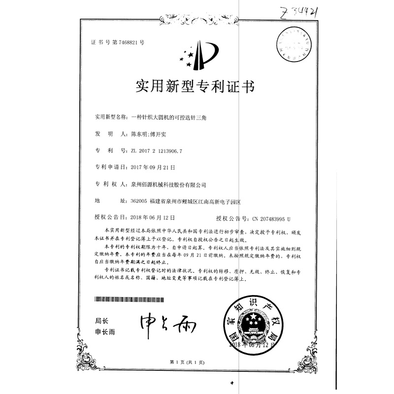 新型-一種針織大圓機(jī)的可控選針三角