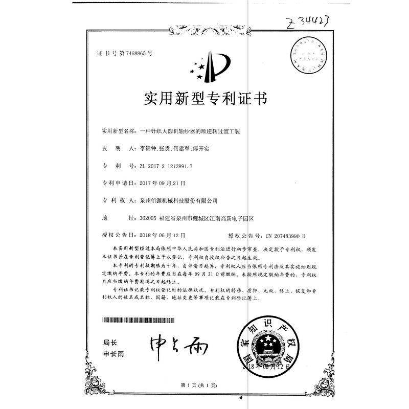新型-一種針織大圓機(jī)輸紗器的順逆轉(zhuǎn)過渡工裝