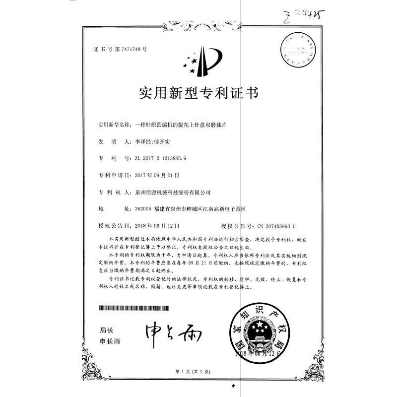 新型-一種針織圓編機(jī)的提花上針盤雙磨插片